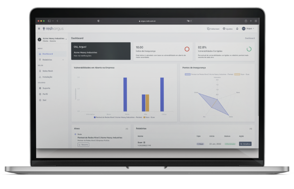 Acompanhe os testes, consulte indicadores de cibersegurança, gere relatórios e consulte analistas de segurança e o nossos hackers éticos, tudo de forma fácil e online.
